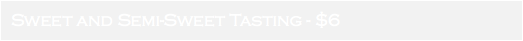 Our Sweet tasing is a fun one at that, bringing out the flavors of the South and reminding you of Summer. This tasting includes: